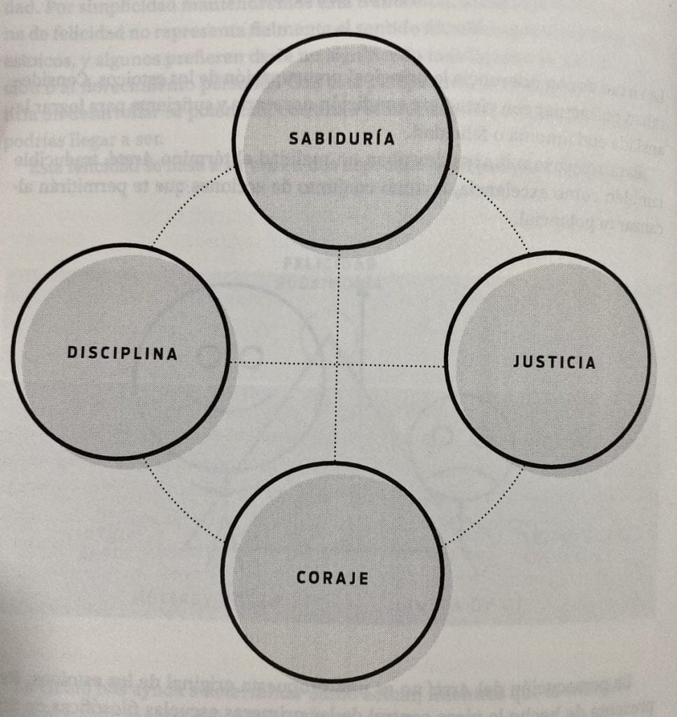 La virtud (areté) es para el estoicismo la piedra angular de la felicidad. La virtud representa la excelencia, el nivel más alto al que un individuo puede llegar a través de sus actos. Para ello, se sustentaban en cuatro ejes primordiales: aprendizaje constante (sabiduría), tratar bien al prójimo (justicia), valentía a pesar del miedo (coraje) y capacidad para superar las dificultades (disciplina).